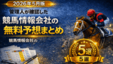 2026年5月に注目すべき競馬情報会社の無料予想を厳選紹介。的中率・回収率・登録の手軽さで選ばれたおすすめ5サイトを徹底比較。当たりすぎると話題の“無料で使える神予想”とは?